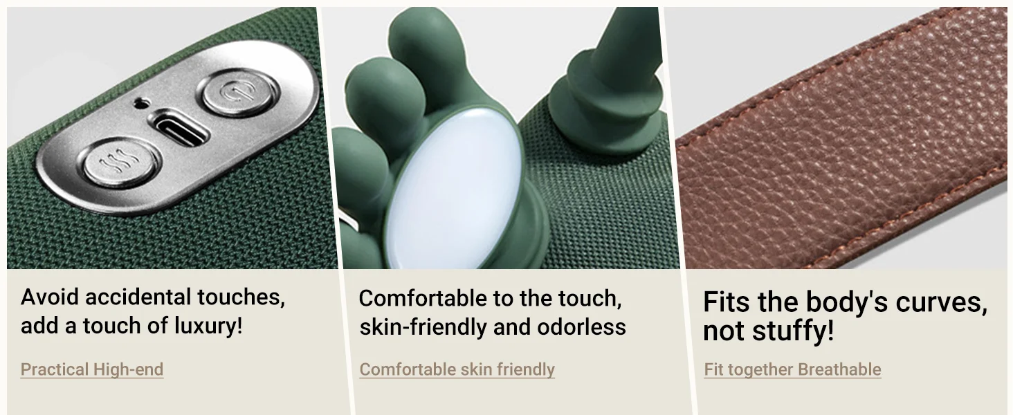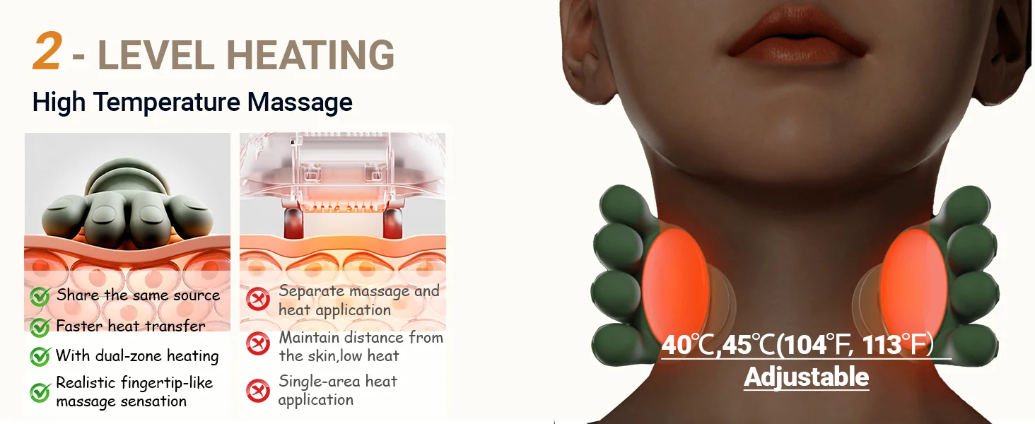 SOOTHING HEAT FOR COMFORT: The neck and shoulder massager provides soothing warmth to help you relax. Two adjustable heating levels are available. The dual-zone heat system adheres closely to the skin, providing a warming effect. The dual-zone heat conduction technology system simulates the palm-of-the-hand heat and adheres tightly to the neck, preventing alternating heat and cold.