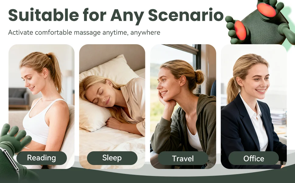 USER-FRIENDLY DESIGN: neck shoulder massage pillow has 2 wearing options for choosing: handheld or wearing with the straps, making it suitable for various use situation.This neck massager is lightweight, and it has compact design.